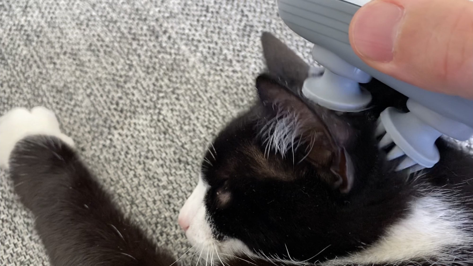 Har købt massageapparatet, og min kat elsker det; især oven på hovedet; hun lukker øjnene og er helt salig 😻